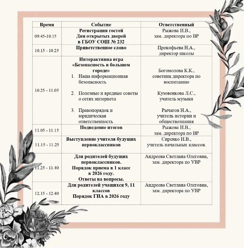 Гостей ждут: интерактивная игра «Безопасность в большом городе», выступление учителя будущих первоклассников, консультации по приёму в 1 класс и по порядку проведения ГИА-2026, а также ответы на все вопросы родителей.